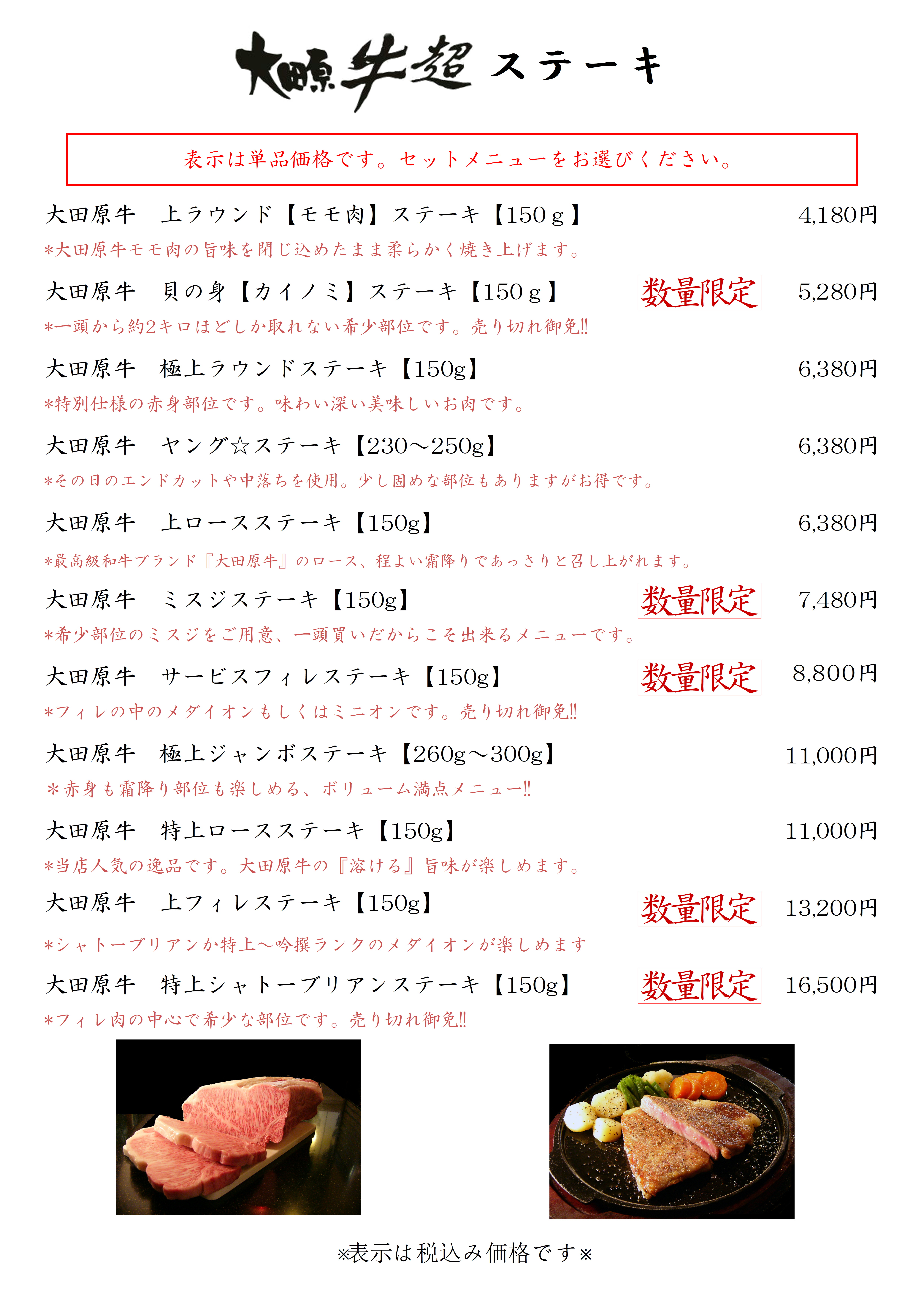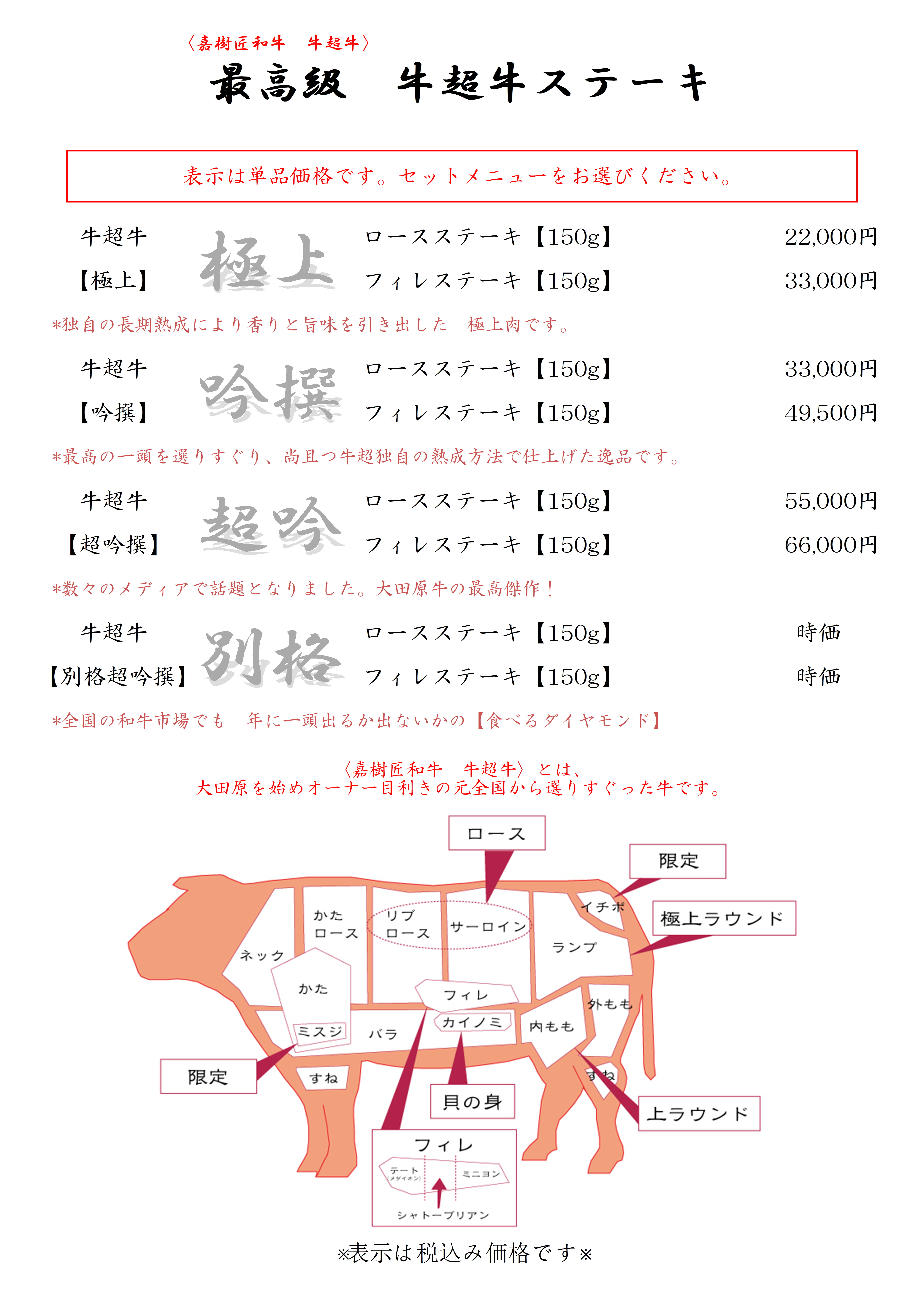 その他 : お子様メニュー等は御座いませんのでご了承下さい。